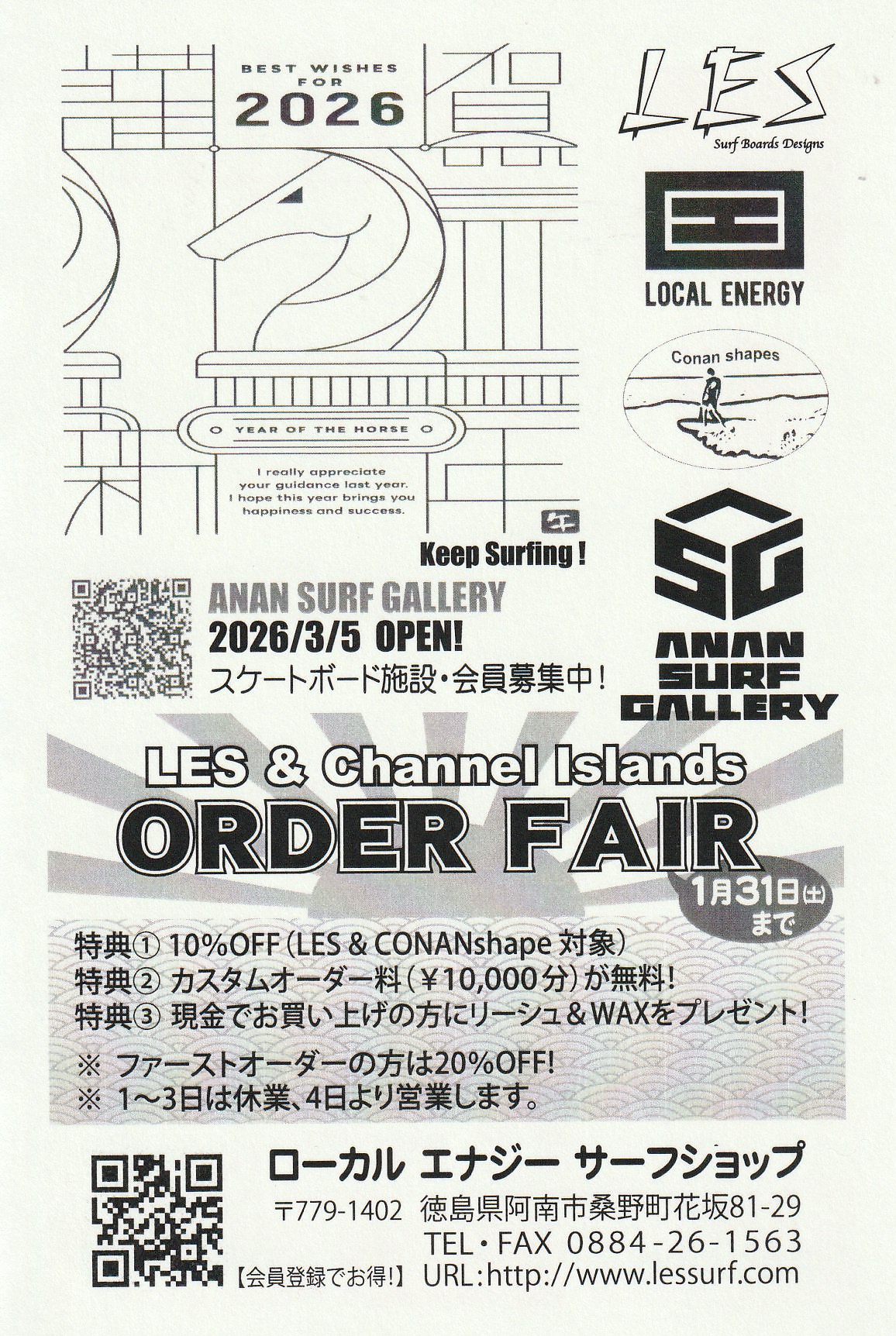 また、ANAN SURF GALLERYが3月5日にオープンします!場所は、LESの2軒隣です。