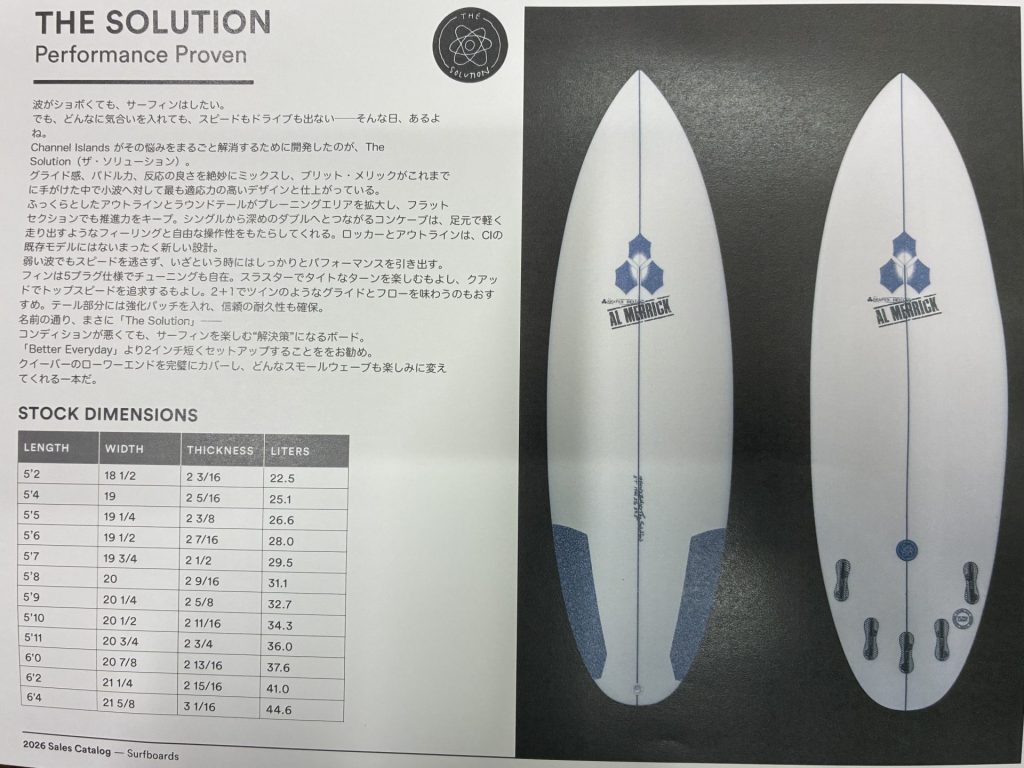 2026 NEW MODEL TheSolution (ザ・ソリューション)入荷!/CHANNEL ISLANDS SAURF BOARDS