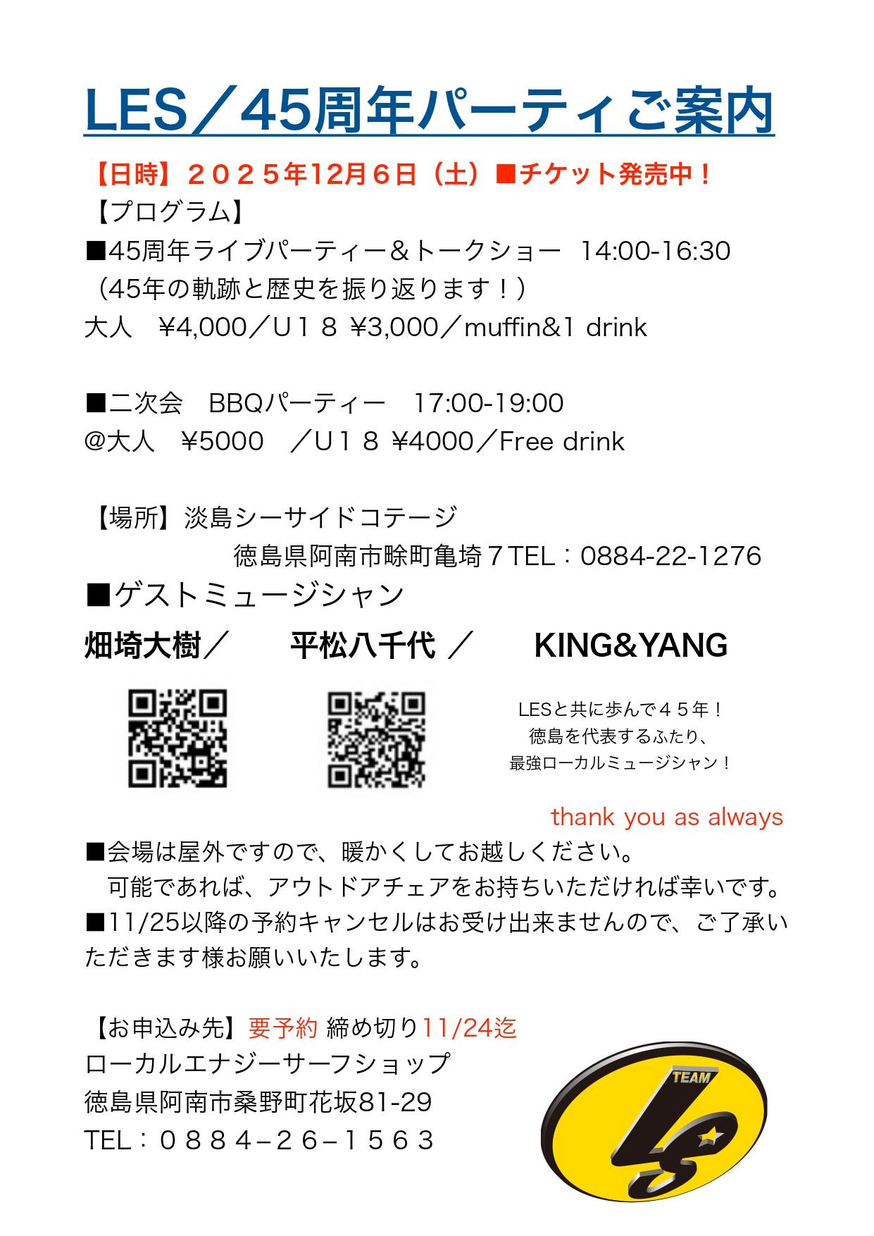LES45周年パーティのご案内(2025.12.6sat)チケット発売中!